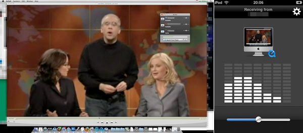 Nella trasmissione wireless dell'audio di un filmato QuickTime, come si può notare nella miniatura, sull'iPhone/iPod touch appare esattamente il primo frame video, accanto al logo dell'applicativo scelto.
