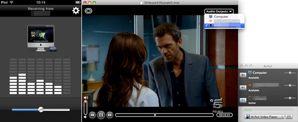 Aggiornamento del 23/04/2009: Rogue Amoeba ci ha suggerito di provare l'Airfoil Video Player (che supporta i formati di Perian) per trasferire audio perfettamente sincronizzato e in realtà funziona molto bene, basta sceglierlo dalla lista degli applicativi in Airfoil e trascinare il file video nel player.