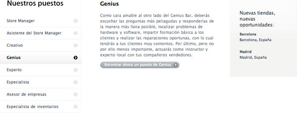 Dove apriranno i negozi in terra iberica ancora è imprecisato secondo le fonti locali ma Apple cerca: store manager, assistenti, esperti, creativi, genius, specialisti, partner e gli addetti del magazzino.