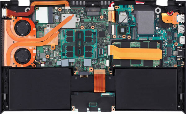 Il concorrente dei MacBook Air ha uno schermo da 13,1 pollici, pesa meno di 1,2 Kg e misura meno di 1,7 cm nella parte più sottile (il laptop di Apple ha uno schermo da 13,3 pollici, pesa 1,32 Kg ed ha uno spessore da 0,3 ad 1,7 cm), ma avendo però la parte grafica (AMD Radeon HD 6650M) collocata esternamente assieme al drive ottico Blu-ray ed usando un potente Core i7-2620M @ 2,7 GHz come processore. La parte che ci interessa maggiormente è l’inclusione della tecnologia Thunderbolt.