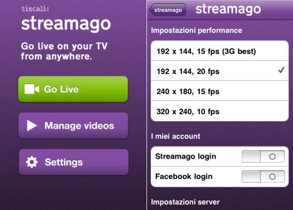 Con l’apposita applicazione per dispositivi iOS come iPad 2/iPhone 3GS/iPhone 4/iPod touch 4G chiunque può trasmettere online in diretta con una banda fino a 500 Kbps, i settaggi sono quelli che vedete a fondo pagina (compreso quello ottimizzato per chi vuole farlo da rete cellulare 3G), ma anche da computer con webcam. Per iPad/iPhone è ammesso l’uso della camera posteriore oppure anteriore.