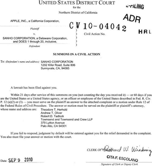 Sempre oberati di lavoro quelli dell’ufficio legale di Apple, questa volta la società di Cupertino ha deciso di fare causa alla Sanho di Sunnyvale.