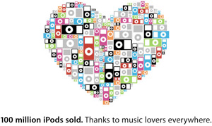 Apple annuncia con orgoglio (alle 14 e 39 di oggi pomeriggio) di aver venduto l'iPod numero 100.000.000!