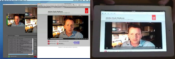 A seconda della richiesta del dispositivo collegato lo streaming arriverà nel formato più adatto, vediamo infatti nell’immagine sottostante che la versione Flash è disposibile sul Mac e quella HTML5 sull’iPad. Il filmato MPEG 4 codificato in H.264/AAC è gestito dal nuovo HTTP Live Streaming.