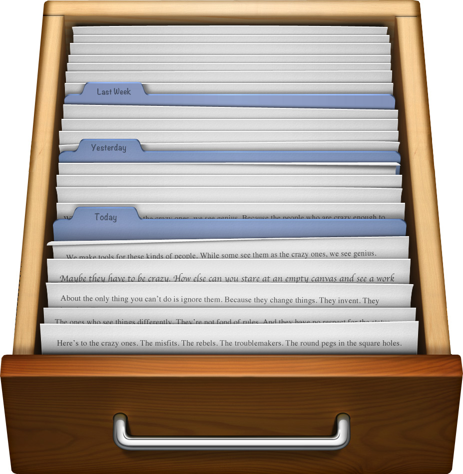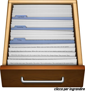 ries/Tutti i miei documenti, appare un po’ diverso ed i file archiviati tra “today” (oggi), “yesterday” (ieri) e “last week” (la scorsa settimana) nascondono di più i testi contenuti e che affiorano. Tuttavia riconosciamo 6 spezzoni del testo della celebre campagna pubblicitaria “Think different“, un po’ ri-formattato per l’occasione: