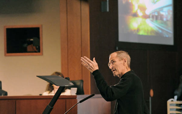Qui vediamo Steve Jobs mentre, 2 mesi fa, presentava il futuro secondo campus di Apple al municipio di Cupertino.