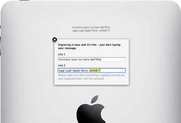Apple regala l’incisione sul retro dell’iPad, non ancora qui