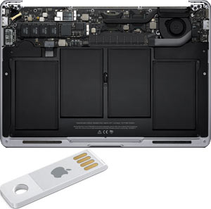 Il prezzo del piccolo MacBook Air con processore @ 1,4 GHz (1,06 Kg) è 999 dollari (64 GB), si passa a 1.199 dollari per 128 GB. Per il modello più grande con processore @ 1,86 GHz i prezzi sono di 1.299 dollari (128 GB) e 1.599 dollari (256 GB). Tutti dispongono di 2 GB di memoria RAM (i 4 GB sono in opzione, come anche il lettore esterno di CD/DVD e l’adattatore USB-Ethernet). La disponibilità è immediata. Ecco i prezzi italiani: 999/1.149/1.299/1.599 euro. Le batterie si sostituiscono, una volta esaurite (dopo 1.000 ricariche), al costo di 129 euro. Apple fornisce un drive USB per il ripristino software.