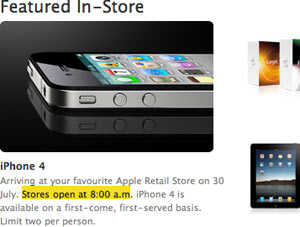 Ci era apparso immediatamente strano quell’orario, visto che Apple aveva stabilito in altre nazioni con negozi (Francia, Germania, Giappone, Gran Bretagna e Stati Uniti) le ore 8 per il lancio dell’iPhone 4, sta di fatto che per sabato scorso l’indicazione dell’orario spariva dalle sempre maltrattate pagine in italiano del sito di Apple.