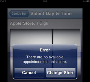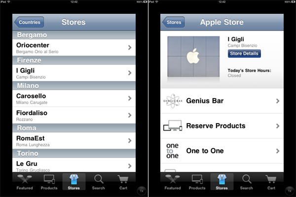 Il negozio non può accettare prenotazioni per il Genius Bar (come si vede accanto), ma la lista dei negozi italiani comprende già I Gigli, ovvero il centro commerciale fiorentino, a pochi chilometri di distanza da Firenze e da Prato, a Campi Bisenzio.