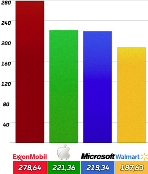 Quei poco più di 2 miliardi di dollari di differenza bastano ad Apple per raggiungere il secondo posto tra le società quotate a New York City, dietro solo ai petrolieri di ExxonMobil, la quale società oggi vale 278,64 miliardi di dollari. Certamente Apple è il titolo tecnologico che vale di più sulla borsa USA (molto probabilmente anche del mondo).