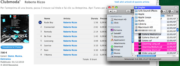 Quello che Apple regala nella suite multimediale, un tizio ha trasformato con impercettibili modifiche in canzone venduta proprio da iTunes Store. Tra i partner dell’editore musicale c’è una discoteca bresciana con logo molto simile a quello di Apple.