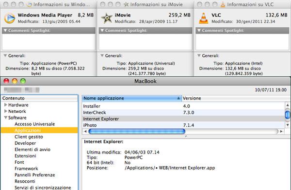 Potete controllare in quale delle 3 categorie la vostra applicazione indispensabile si posiziona con semplici passi. Si può individuare l’icona del software, cliccandoci sopra 1 volta e premendo il tasto CMD più la “i”, dalle informazioni si leggerà chiaramente il tipo. Oppure, per chi vuole controllarle tutte, si può aprire System Profiler (è dentro la cartella Utility della applicazioni) ed alla voce Software>Applicazioni analizzare il tipo per tutti gli applicativi sul computer. In questo caso è anche leggibile se le applicazioni sfruttano completamente la potenza dei processori @ 64 bit.
