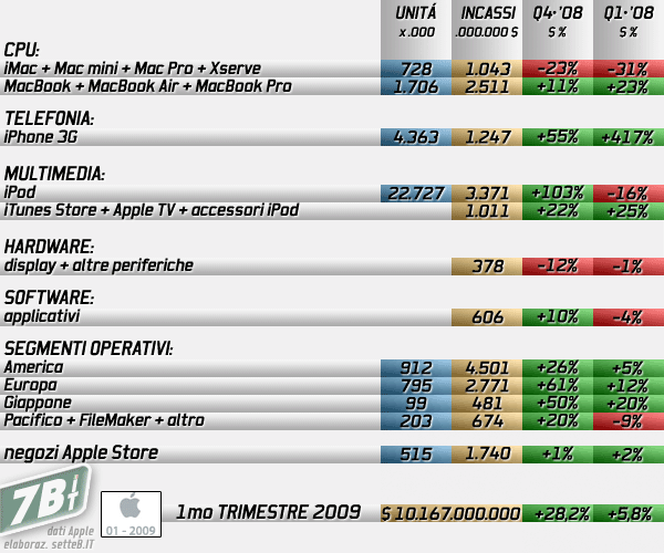 Esattamente un anno fa Apple fatturava 9,6 miliardi di dollari nel primo trimestre del 2008, stabilendo il record assoluto per un trimestre finanziario dell'azienda di Cupertino.