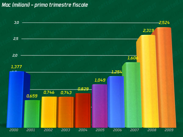 Grande popolarità per i computer di Apple che, nei vari primi trimestri degli ultimi anni fiscali, hanno avuto una grande progressione sul mercato. Non c'è modo migliore per sfiorare il 25esimo compleanno del Macintosh originale.