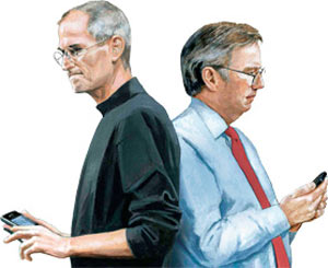 Grazie a BusinessWeek il CEO di Apple può vantare una nuova copertina, quella che vede Steve Jobs con in mano un iPhone contrapposto ad Eric Schmidt con un Nexus One.