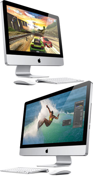 Gli Apple Store sono stati messi offline poco prima di mezzogiorno e 3 ore dopo ci rivelano i nuovi modelli: tutti sono ora equipaggiati con i chip Intel Core i5 a 4 nuclei, i clock per gli iMac da 21,5″ sono di 2,5 e 2,7 GHz, quelli per gli iMac da 27″ sono di 2,7 e 3,1 GHz. Tutte nuove le schede grafiche di AMD (più potenti fino a 3 volte): la Radeon HD 6750M con 512 MB di memoria nel modello base, la Radeon HD 6770M con 512 MB nei 2 modelli centrali e la Radeon HD 6970M con 1 GB di memoria per il modello top (in opzione la stessa ma con 2 GB di memoria, +100 euro). Sono stati abbandonati i Core i3, precedentemente adottati in versione dual core.