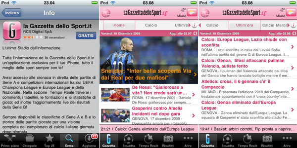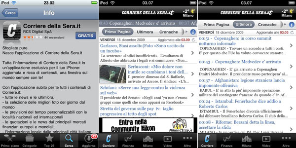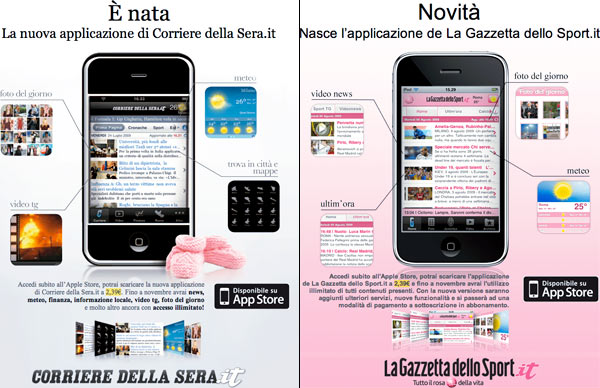 Sul sito di Corriere della Sera e Gazzetta dello Sport si legge che i due omonimi software per iPhone/iPod touch costano 2,40 euro ciascuno e che, fino a novembre, le notizie erano ancora leggibili gratuitamente. Tutte e due le informazioni sono sbagliate.