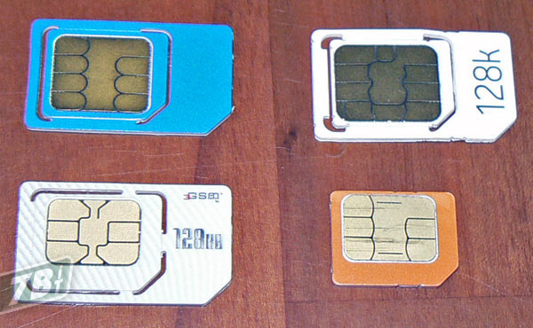 Le 4 schede che si trovano in commercio in Italia hanno qualche differenza: quelle di TIM e Vodafone sono da 128 KB, quella di Wind da 64 KB e quella di 3 non si sa, non è scritto né sulla tessera né nella documentazione. Inoltre la scheda di Wind è conformata unicamente per il formato micro SIM e non nel doppio SIM + micro SIM scelto dagli altri operatori.