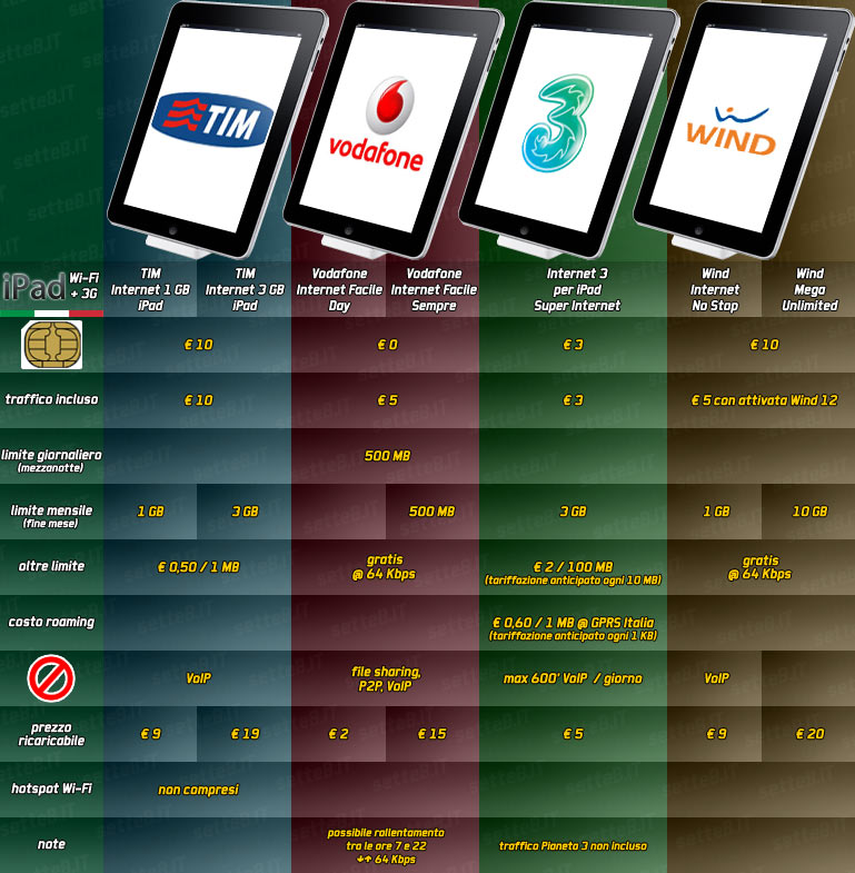 Tutti gli operatori si sono attrezzati per offrire ai clienti dell’iPad l’apposita scheda telefonica, qualcuno in accordo con Apple ed altri no. Vi mostriamo tutto di questa concorrenza totale.