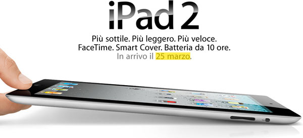 Tutte le altre traduzioni del sito di Apple riportano ancora il 25 marzo come data dell’arrivo dell’iPad di seconda generazione. Questa la pagina italiana.