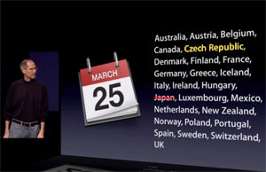 Apple aveva lanciato l’iPad 2 l’11 marzo solo in USA e pianificato il lancio internazionale del 25 marzo, venerdì prossimo, in Australia, Austria, Belgio, Canada, Danimarca, Finlandia, Francia, Germania, Gran Bretagna, Grecia, Islanda, Irlanda, Italia, Lussembourgo, Messico, Norvegia, Nuova Zelanda, Olanda, Polonia, Portogallo, Repubblica Ceca, Spagna, Svezia, Svizzera ed Ungheria. Unico ritardo ufficiale, oltre che legittimo, è quello per il Giappone, dove ci sono decisamente altre priorità e difficoltà logistiche per muovere merci in quel disastrato paese.