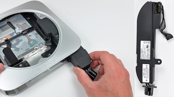 Apple è riuscita a far stare dentro al Mac mini un piccolo trasformatore di corrente da 7 A a 12 V.