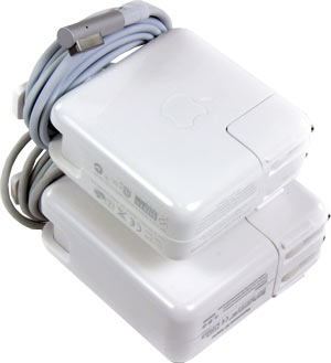 Assieme al computer Apple fornisce l’alimentatore, che è sempre da 45 W ma più piccolo del modello precedente, come si vede accanto.