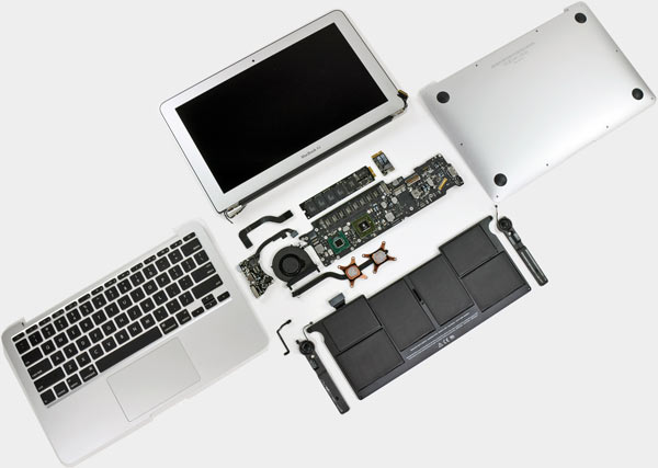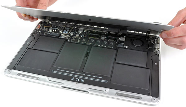 Bisogna vederlo dentro per capire come Apple ha infilato in uno spessore tanto sottile tutte le novità di questo simil-netbook, partendo dalle memorie flash e terminando con le batterie. Tutta filosofia perché non c’è nulla che potrà sostituire l’utente.