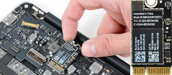 Il classico chip wireless di Broadcom (Bluetooth/Wi-Fi) è assemblato diversamente per il MacBook Air.