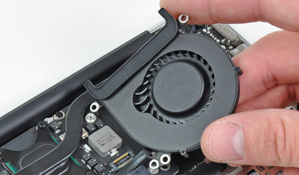 Togliendo poche altre viti si può estrarre la sottile e compatta ventola per il raffreddamento interno, posta nella zona più alta del computer.