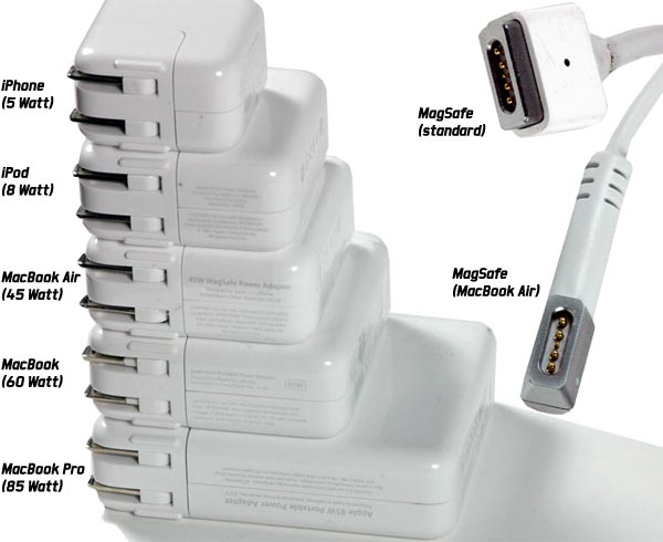 Gli amici californiani di iFixit, tanto per cominciare, hanno avuto la buona idea di comparare i vari alimentatori (con spina elettrica USA, ovviamente) che Apple adotta nella sua gamma di prodotti, quello del nuovo laptop MacBook Air è certamente il più compatto tra quelli dei computer, anche grazie ai soli 45 W richiesti.