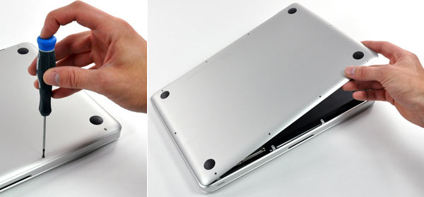 La spiegazione di come aprire la parte posteriore del MacBook Pro 13" l'ha fornita direttamente Apple, per chi desidera cambiare hard disk e RAM serve solo un cacciavite.