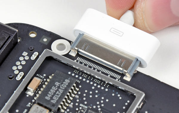 Sembra che Apple abbia mutuato qualcosa da una scheda degli iPad visto che qui sembra essere il posto ideale per un connettore Dock da 30 pin.
