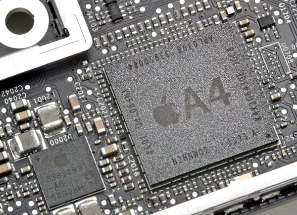 Sul retro qualche altro chip marchiato Apple e di altri fornitori, con un totale di 256 MB di RAM (come l’iPod touch 4G, mentre l’iPhone 4 ne ha 512 MB).