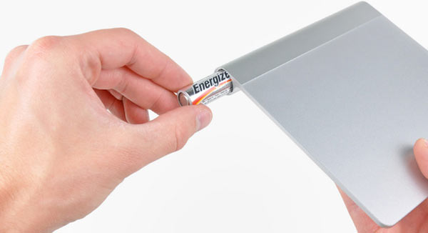Sono contenute 2 batterie AA nella Magic Trackpad, quelle da usare una volta sola oppure quelle ricaricabili a lunga durata offerte da Apple assieme al carica-batterie.