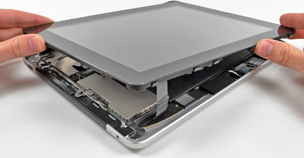 Ma vediamolo questo iPad 3G, cominciando a scollegare il display ed i cavi delle antenne.