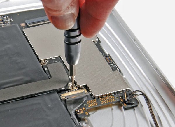 Così si può staccare la seconda parte della scheda logica, che si trova solo nell’iPad 3G,