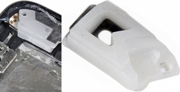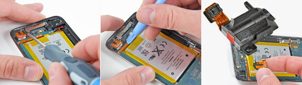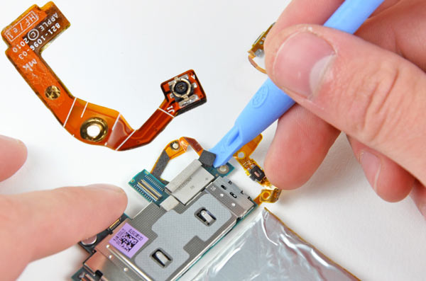 Questo è il procedimento per staccare il componente della presa mini-jack, marchiata Foxconn, il principale assemblatore asiatico di Apple.