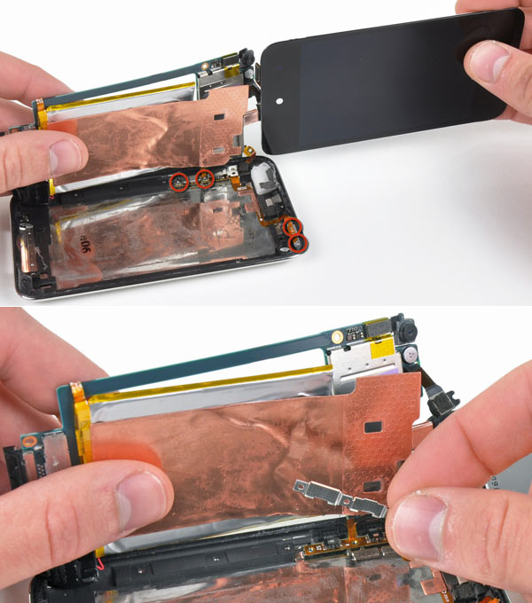 Verso la liberazione della batteria dal suo alloggiamento nell’iPod touch 4G.