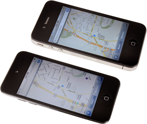 Un parallelo tra l’iPhone 4 e l’iPod touch per sottolineare l’assenza della tecnologia IPS dallo schermo (seppur ad alta risoluzione) di quest’ultimo.