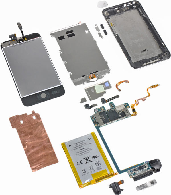 Infine questo è l’esploso di tutte le parti che gli esperti sono stati in grado di smontare dall’iPod touch di quarta generazione.