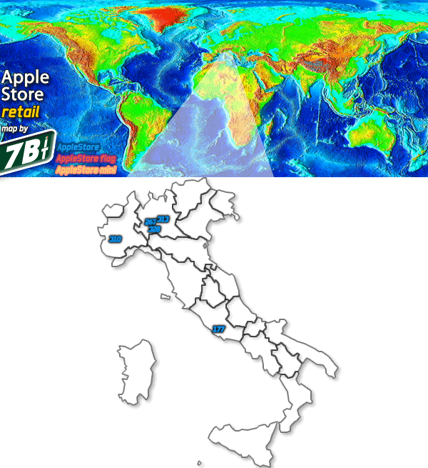Questo negozio arriverà a seguito della precedente inaugurazione a Reading, in Gran Bretagna e dopo quelli nostrani di Roma, Carugate (MI), Grugliasco (TO) ed Orio al Serio (BG). Per il futuro Apple starebbe pensando a nuovi negozi a: Bologna, Firenze, Napoli e Catania (anche se in città dovrebbe essere localizzato solo quello bolognese, mentre gli altri in provincia o addirittura in quelle vicine). Non si esclude anche una futura prestigiosa location nel centro di Milano.
