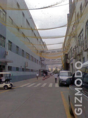La foto che vedete l’ha pubblicata Gizmodo e mostra le reti stese tra le palazzine di una fabbrica di Foxconn.