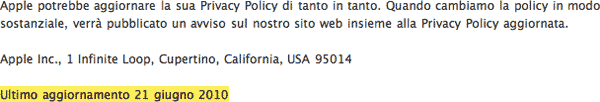 Con i termini di servizio aggiornati da Apple lunedì scorso (come vedete qui sotto), leggibili anche su iTunes al momento di effettuare un download, si indica solo che le regole sono genericamente cambiate e poi si spiattellano 26.437 parole, spesso in legalese stretto, sta poi all’utente scoprire le novità, che non sono evidenziate in alcun modo. Fortunatamente però una settimana fa vi mostravamo le differenze tra vecchia e la nuova versione.