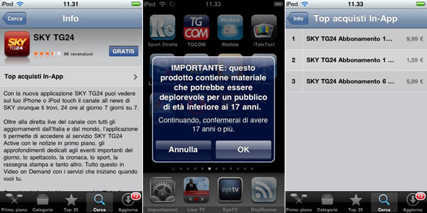 Il primo della televisione satellitare a pagamento è un applicativo gratuito che funziona con i micro-pagamenti, se ne propongono da 1,59/5,99/9,99 euro a seconda che ci si voglia abbonare alla visione del telegiornale di Emilio Carelli per 1 mese, 6 mesi (sconto del 37%) o 12 mesi (sconto del 48%). Tuttavia per il primo mese è tutto gratis.