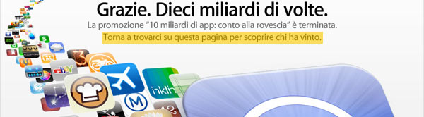 Aggiornamento del 27/01/2011: finalmente la home page di Apple in italiano è cambiata, tolta l’inutile promessa mai mantenuta di pubblicare in quel posto il nome del vincitore, ora semplicemente ringrazia chi ha partecipato. L’analoga pagina era già online da diversi giorni nelle altre versioni internazionali.