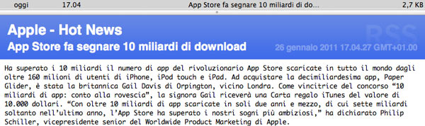 Aggiornamento del 26/01/2011: nonostante la home page in italiano del sito di Apple sia una delle poche che ancora continua ad annunciare la futura comunicazione del vincitore, il feed RSS di Apple Italia si sveglia oggi, 3 giorni dopo la comunicazione ufficiale del nome del vincitore, per dire chi ha vinto.