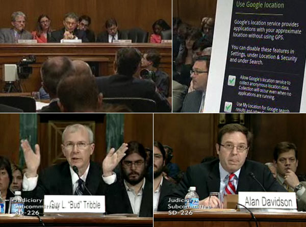 I rappresentanti delle aziende californiane leader del settore hanno insistito nel confermare che loro la privacy degli utenti la rispettano. L’uso delle reti cellulari e degli hotspot Wi-Fi, quando non il GPS, sono utili per fornire servizi in applicazioni specifiche che l’utente deve accettare in modo chiaro. Apple ha depositato una spiegazione scritta. Google ha addirittura portato un cartello che sintetizza come l’utente deve fare il cosiddetto “opt-in”, lo stesso descritto anche dalle etichette che alcuni carrier statunitensi vogliono appiccicare sui dispositivi con tecnologie di geo-localizzazione.