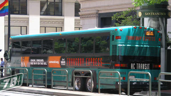 I bus affittati da Apple (non necessariamente quello mostrato qui sotto, uno dei tanti ad alta tecnologia che circola a San Francisco e non solo) sarà dotato di connettività Wi-Fi e per ogni sedile sarà a disposizione una presa della corrente per il computer.